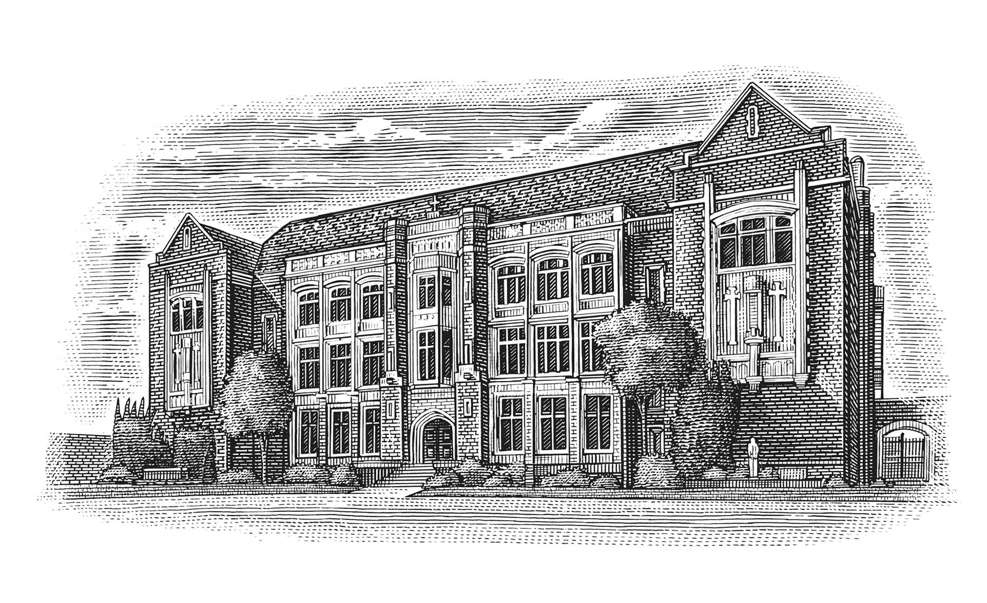 architecture, scratchboard, scraper board, woodcut, linocut, artwork, illustration, buildings,