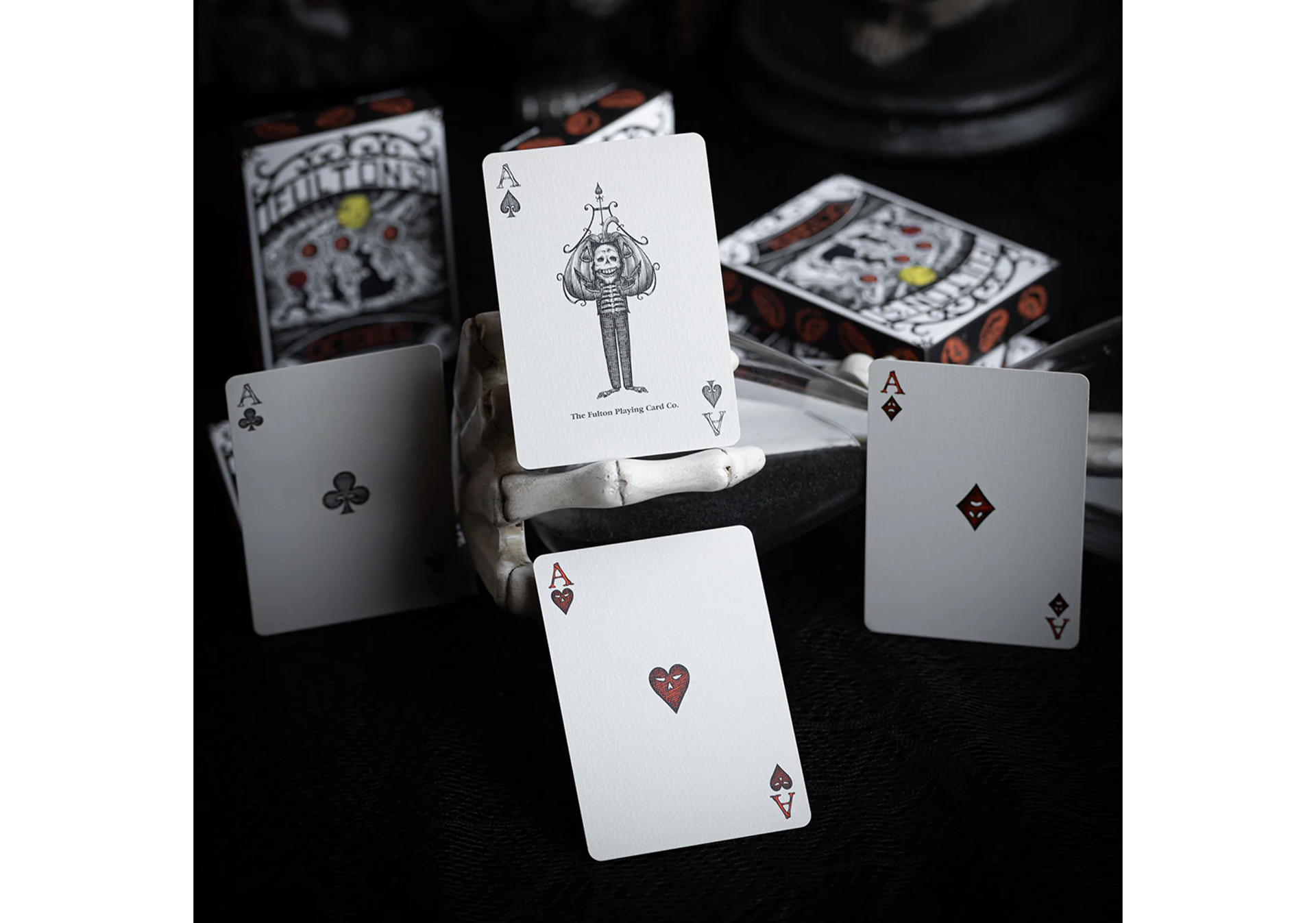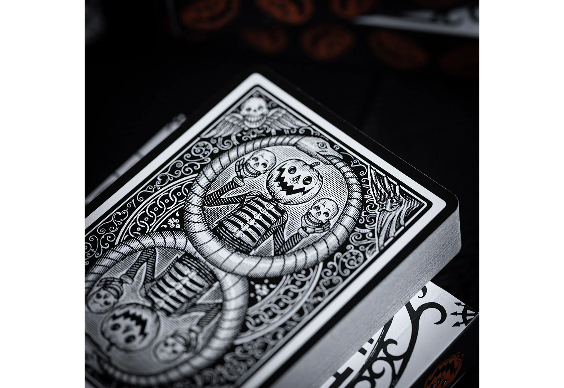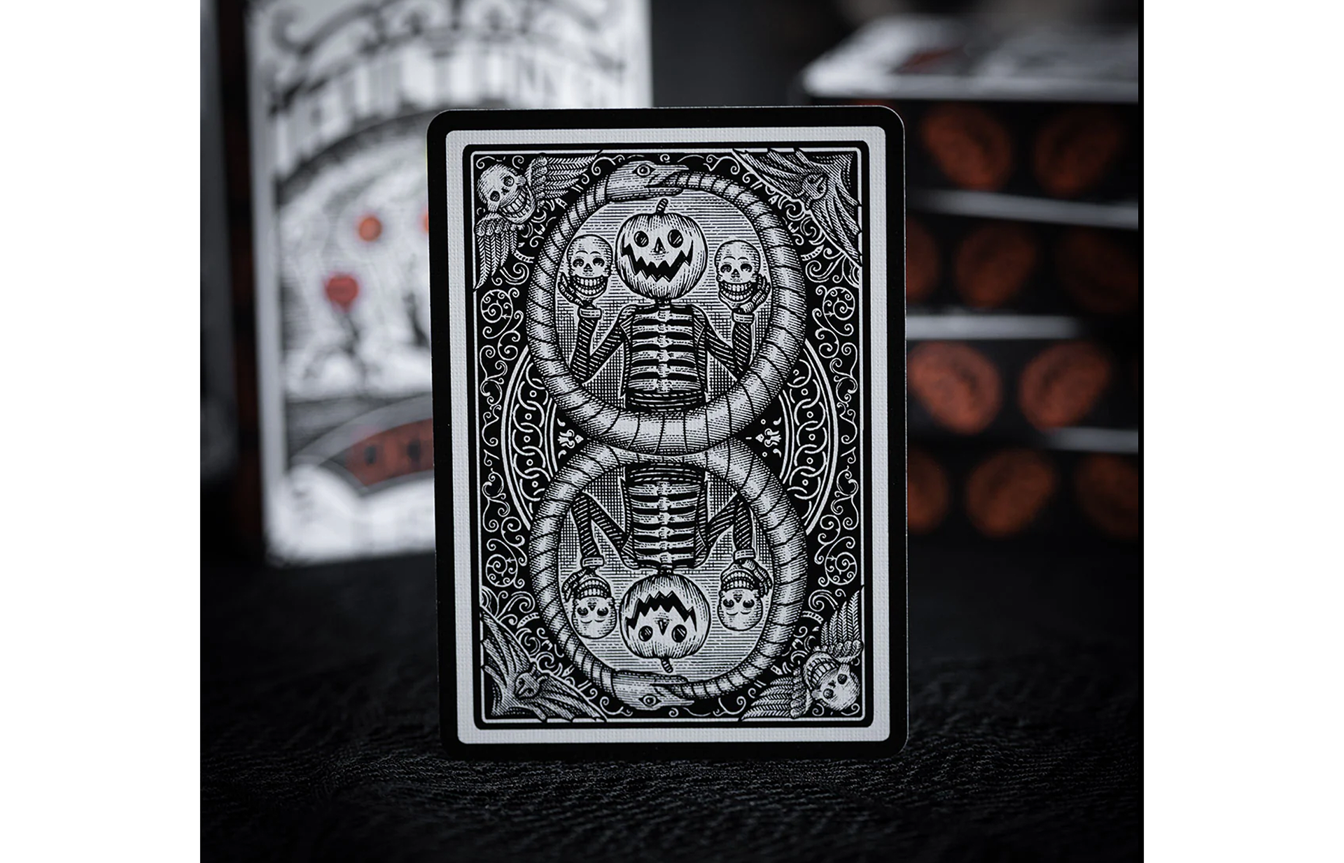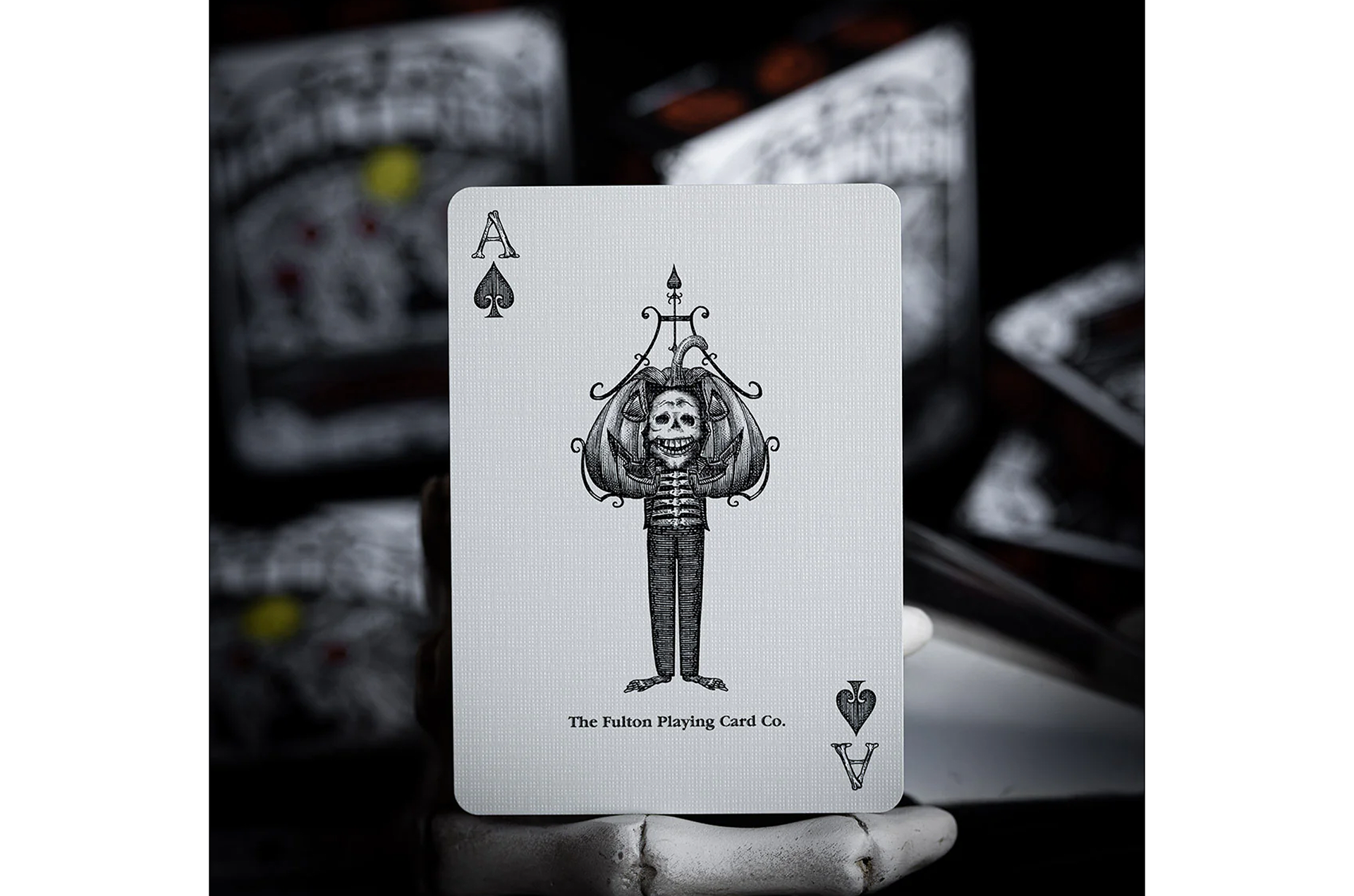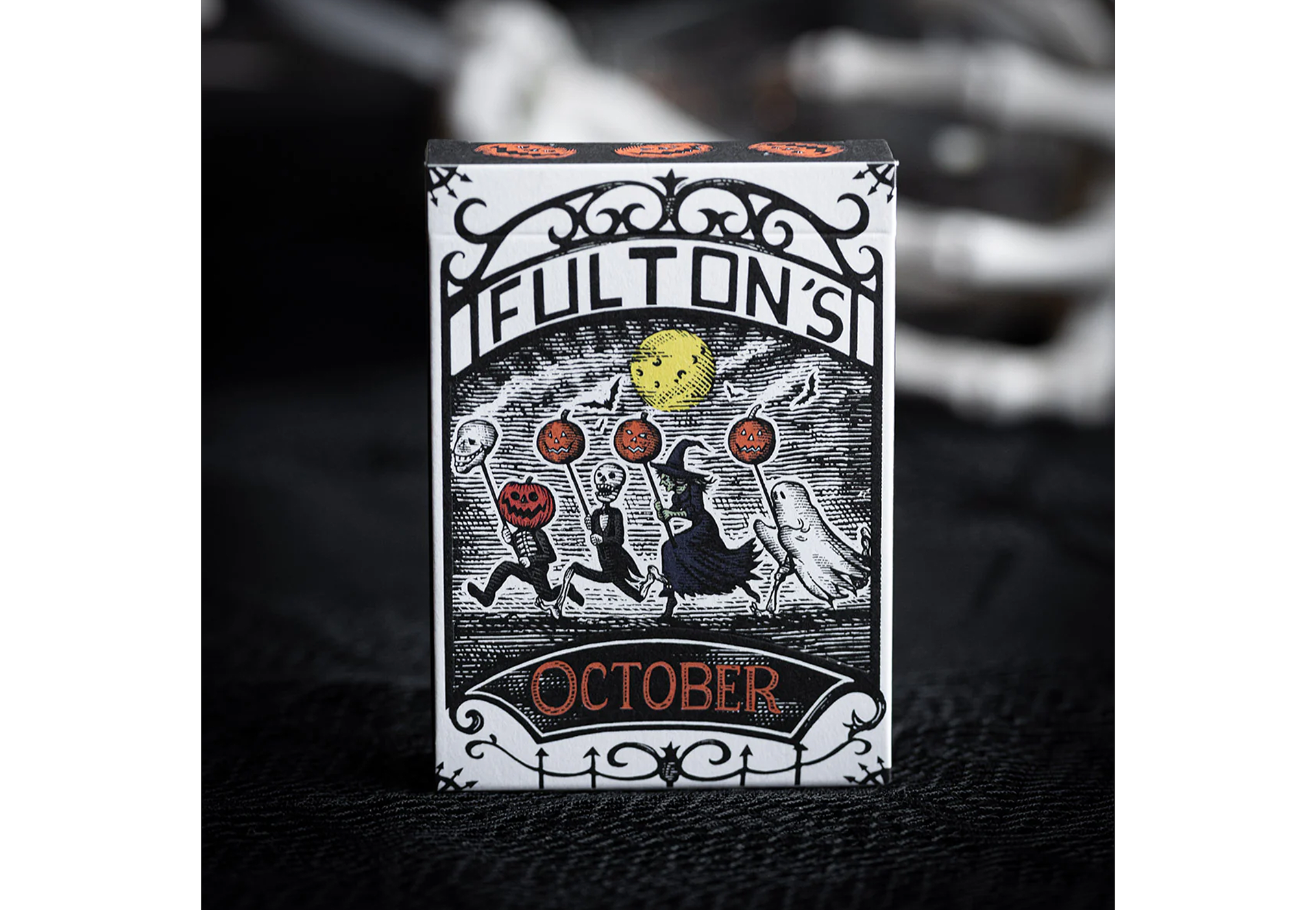 This first edition of October V2 features a striking black-bordered card back featuring our favorite Jack-O-Lantern prominently displayed holding his old friends. Every number and letter on the number cards was hand illustrated by Noble using a bone-like new Fulton Font. This is the best the October Universe has ever looked.