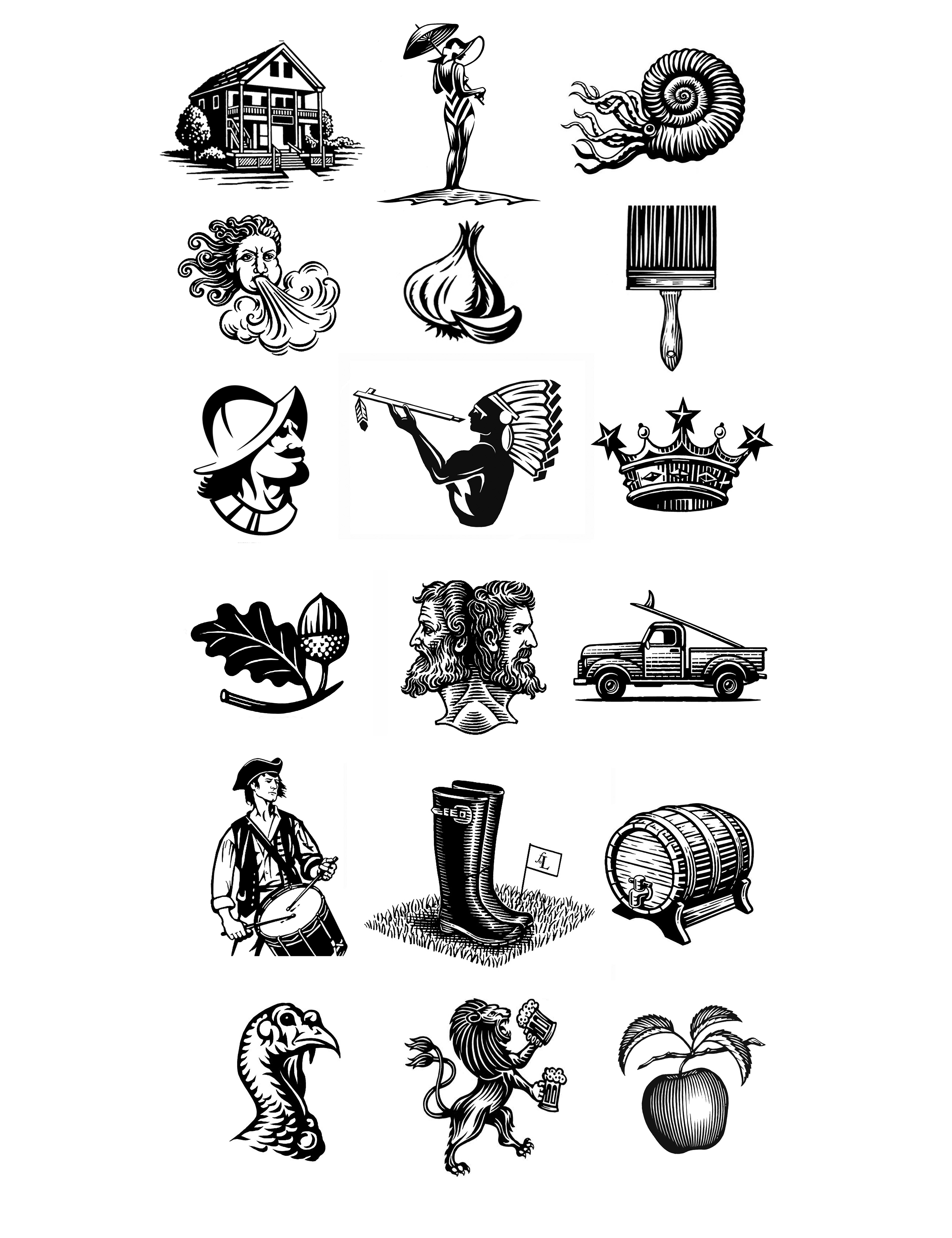 The Illustrated Graphic Icons Collection created by Steven Noble includes a collection of graphic illustrations illustrated in a hand-crafted bold vector style with an extensive variety of subject matter such as food, architecture, animals and conceptual images for several clients.