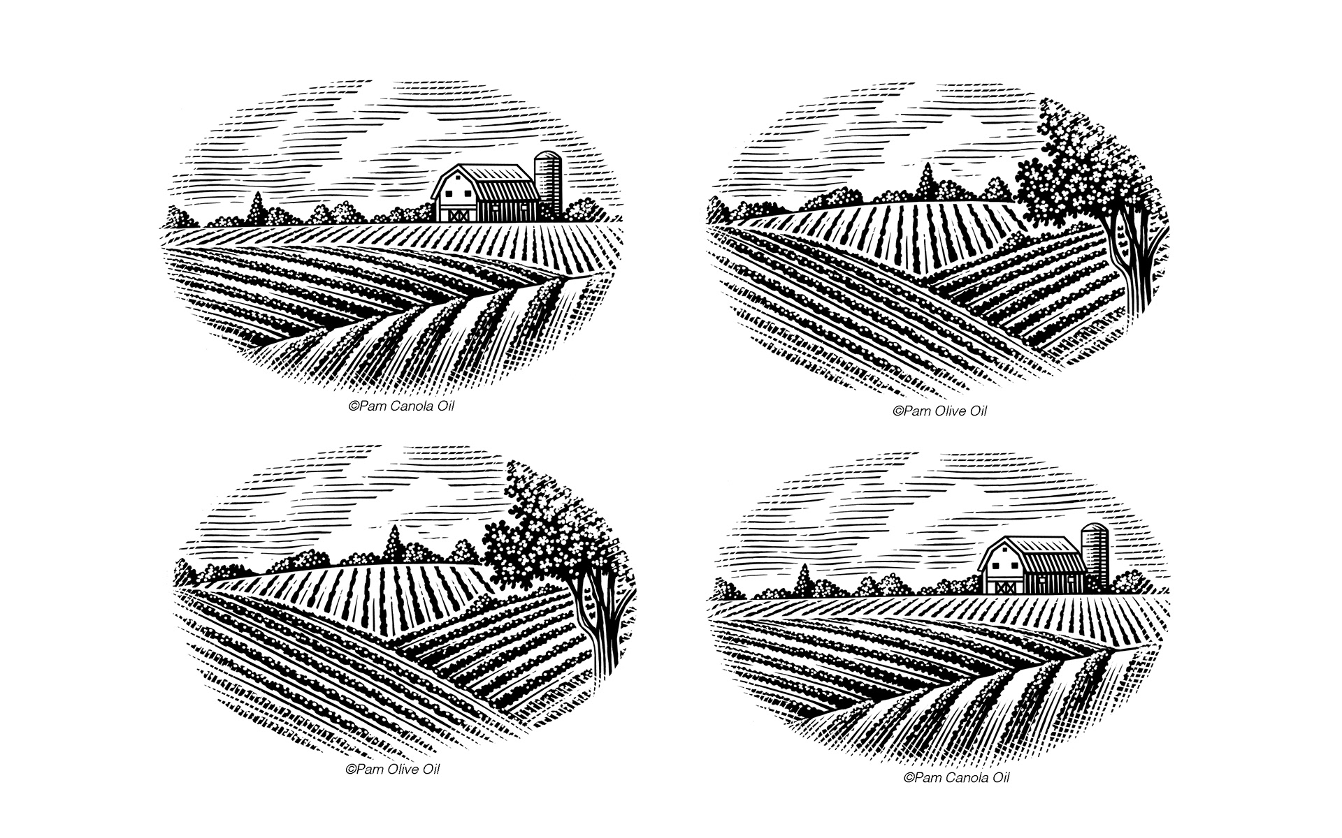 Wallace Church commissioned Steven Noble to create custom illustrations for Pam’s new “organic” line of canola and olive oil packaging labels. These handcrafted woodcut illustrations perfectly match the messaging of 100% “organic” and from the earth. Pam organic canola oil uses oil from organic canola seeds, which are harvested, pressed and blended with other quality organic ingredients.