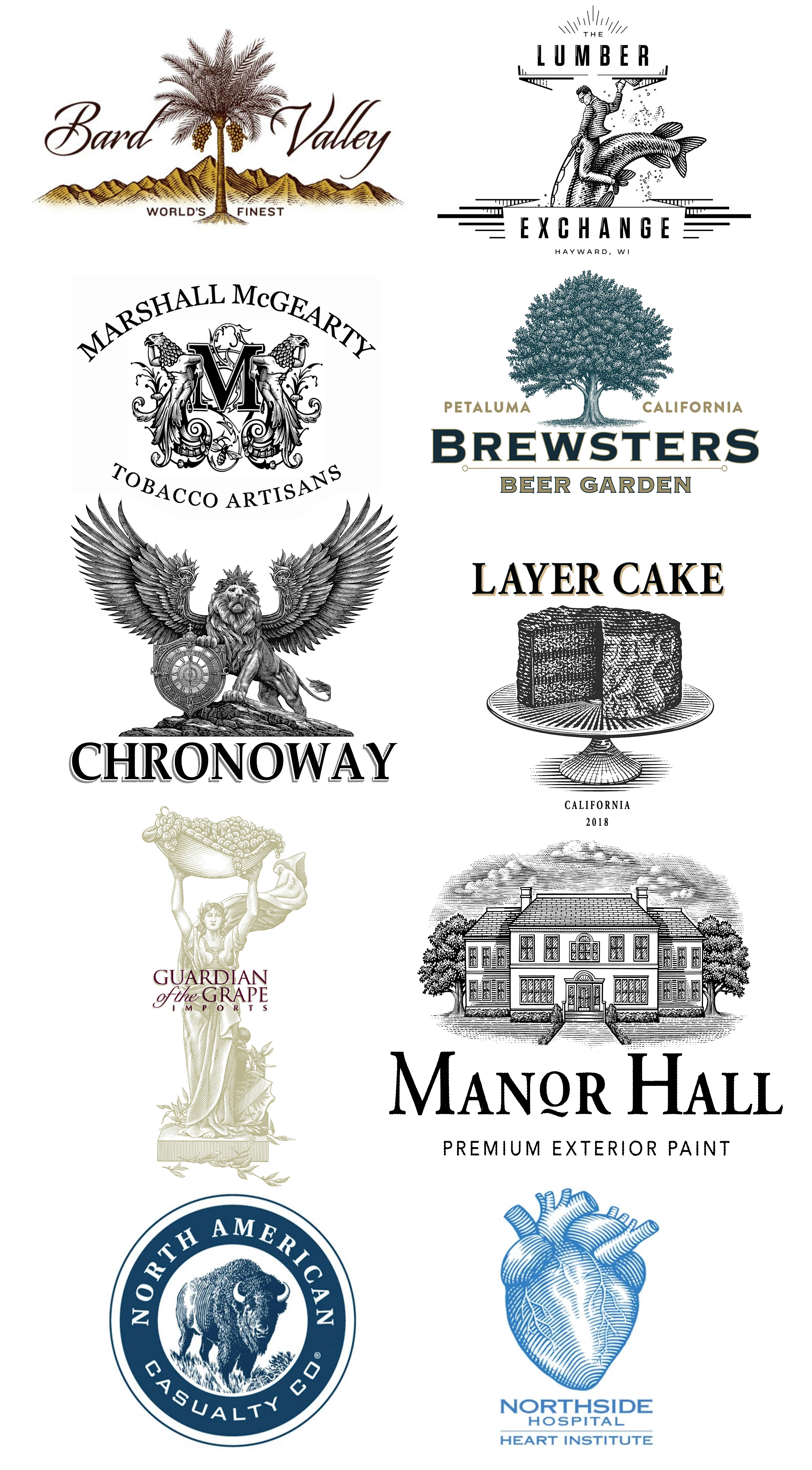 Steven Noble Illustrations Logos Collection II includes a vast array of hand crafted illustrations with different subject matter. These hand crafted illustrations were all completed from commissioned projects from different clients for use on logos, packaging labels, brand marks, etc…