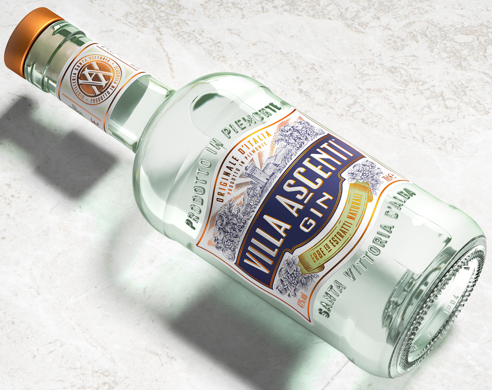 Villa Ascenti commissioned Steven Noble to create the new illustration for a new brand packaging label in a scratchboard engraving style. The challenge was to illustrate and include all these ingredients sourced from the hills of Piemonte, celebrated as the ‘Bread Basket of Italy, and combine that with scenes from the Italian landscape. Piemonte is renowned for its terroir, production of fine wines and vermouth and this illustration brings to life the beauty of the picture-perfect Italian landscape and its local botanicals through the added vintage sign typography and vermouth label illustration, distinctive to the region.